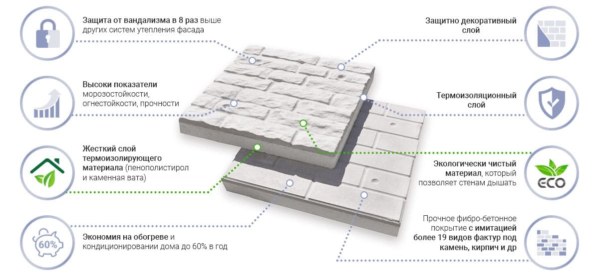 Этот материал сочетает в себе преимущества сразу нескольких вариантов облицовки, которые особенно актуальны для российского потребителя: